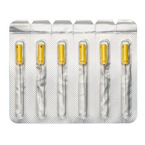 Для рабочей части Н-файлов № 20 Pro-Endo применена прочная и гибкая нержавеющая сталь. Спиралевидная насечка отлично снимает ультратонкие слои дентина, позволяет работать с каналами любого профиля.