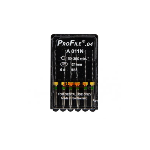 ProFile 04 №35 от известного бренда Dentsply – эндодонтический инструмент с конусностью 0,04 и диаметром 0,35 мм. Изготовлен из никель-титанового сплава, обеспечивающего гибкость и прочность. Уникальная конструкция повышает режущую эффективность и устойчивость к излому.