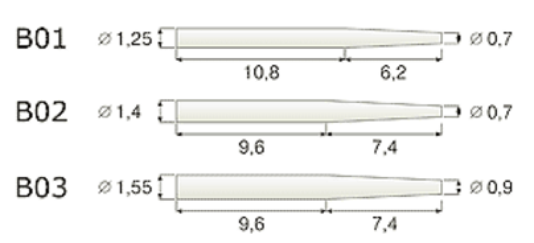 Стекловолоконные штифты IKS-В01-V применяются для армирования композитных реставраций сильно разрушенных зубных коронок. Он изготовлены из прочного материала, обеспечивающего долговечность реставраций, конусная форма облегчает их установку в корневые каналы.